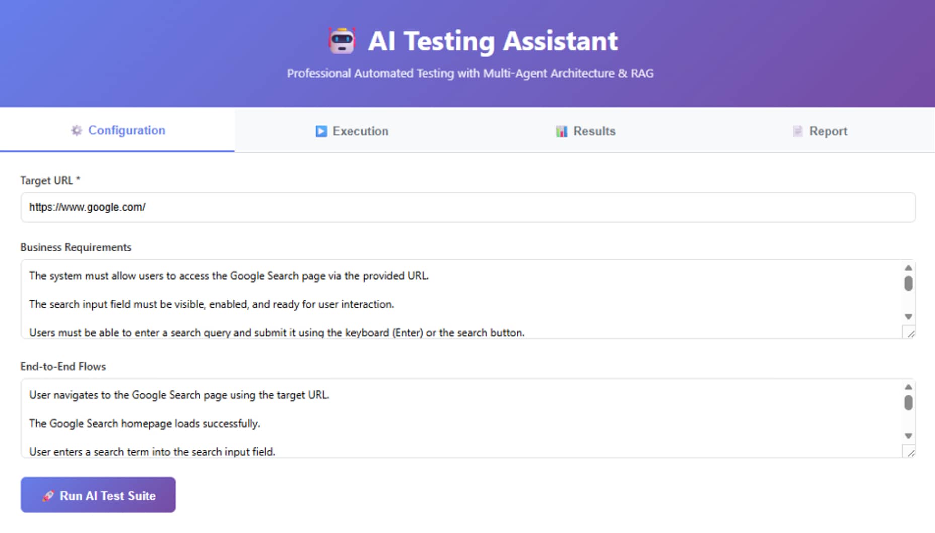 以Google搜索测试为例,该系统在点击“运行AI测试套件”后,会自动经历以下五个阶段: