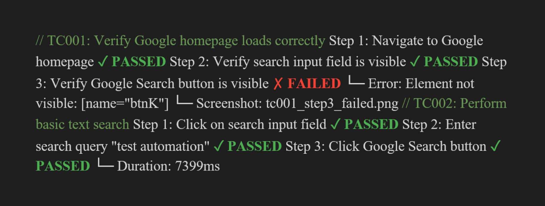 Playwright逐一执行测试步骤,捕获异常并保存关键路径的截图。